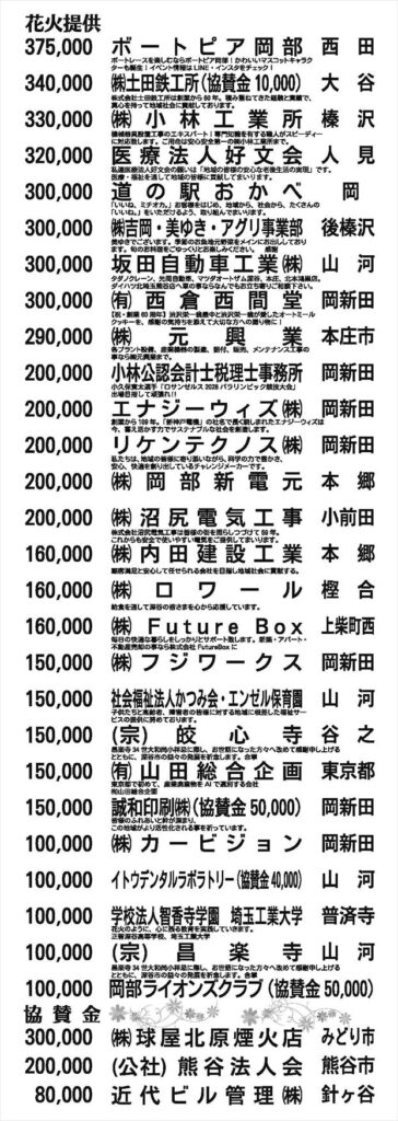 「おかべコスモス祭・花火大会2025」は多くの皆様方のご支援、ご協力によって運営されております。